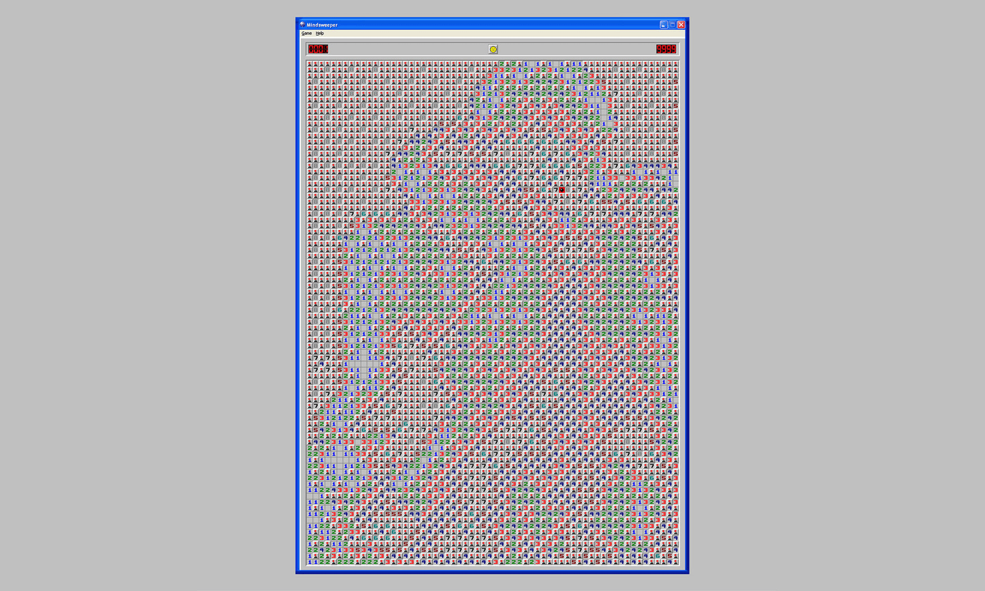 The visual language contrasts vulnerability with risk. A pixelated rendering inspired by Rodin’s The Kiss is overlaid with elements from the Minesweeper game, turning intimacy into a field of uncertainty. Scatted mines interrupt the image, leaving one final mine unresolved. The composition holds tension between choice and consequence, suggesting that ambiguity persists even in moments that feel sincere and certain.