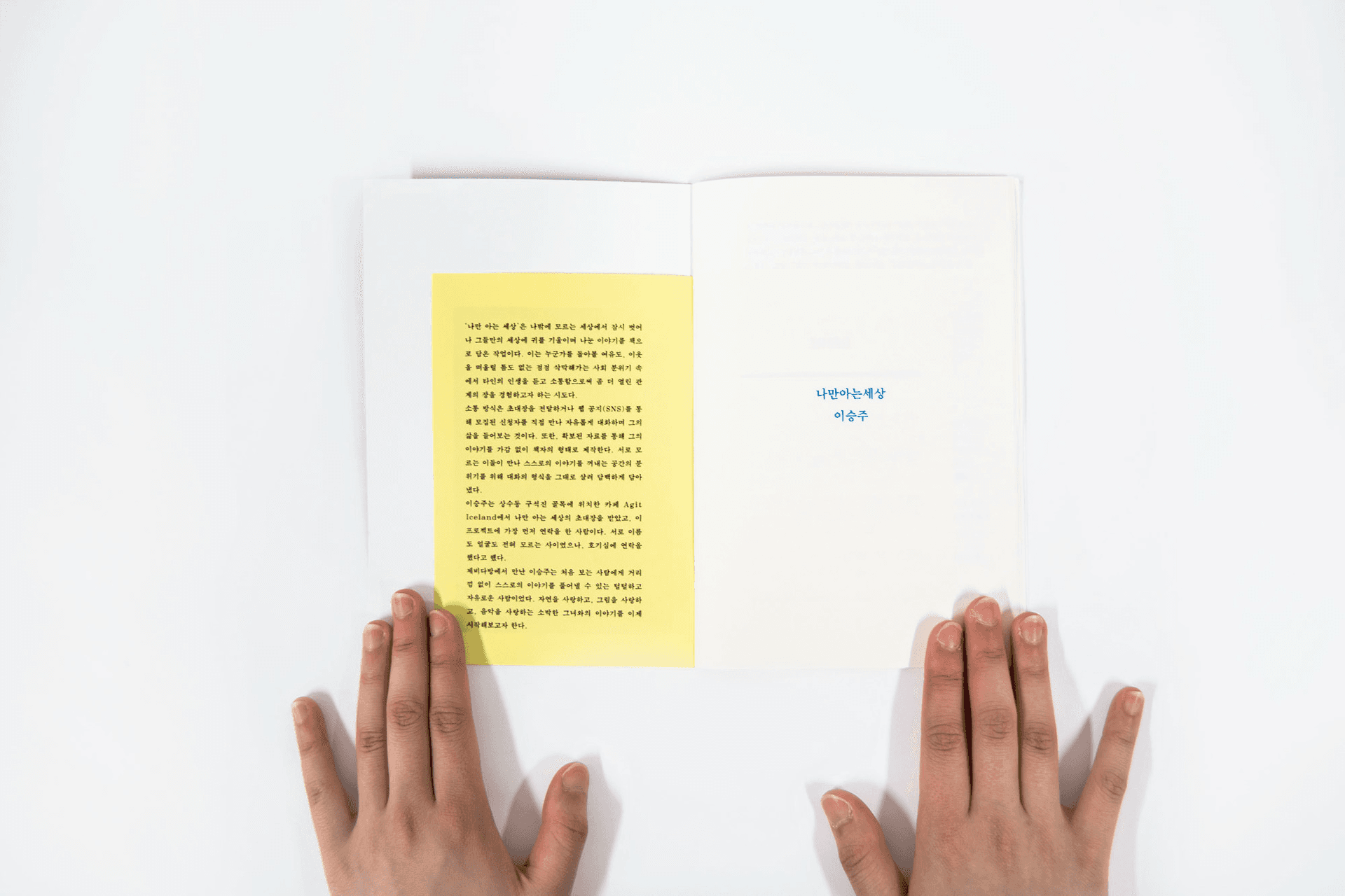 The World Only I Know explores this isolation through its double meaning: a world shaped by self-absorption, and the unseen inner worlds each person carries. Through direct interviews and conversations, personal histories were gathered and translated into a series of small books. Each volume foregrounds an individual life, inviting readers to step briefly beyond their own perspective. By listening and documenting, the project seeks to reconnect fragmented social threads and restore a sense of shared humanity.