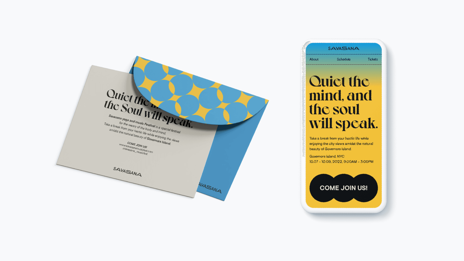 Set on Governors Island, the visual identity balances calm and energy through a cohesive graphic system spanning invitations, tickets, motion, and digital platforms. The design reflects the festival’s intention to help participants slow down, reconnect with their bodies, and experience sound and movement as a form of collective rest.