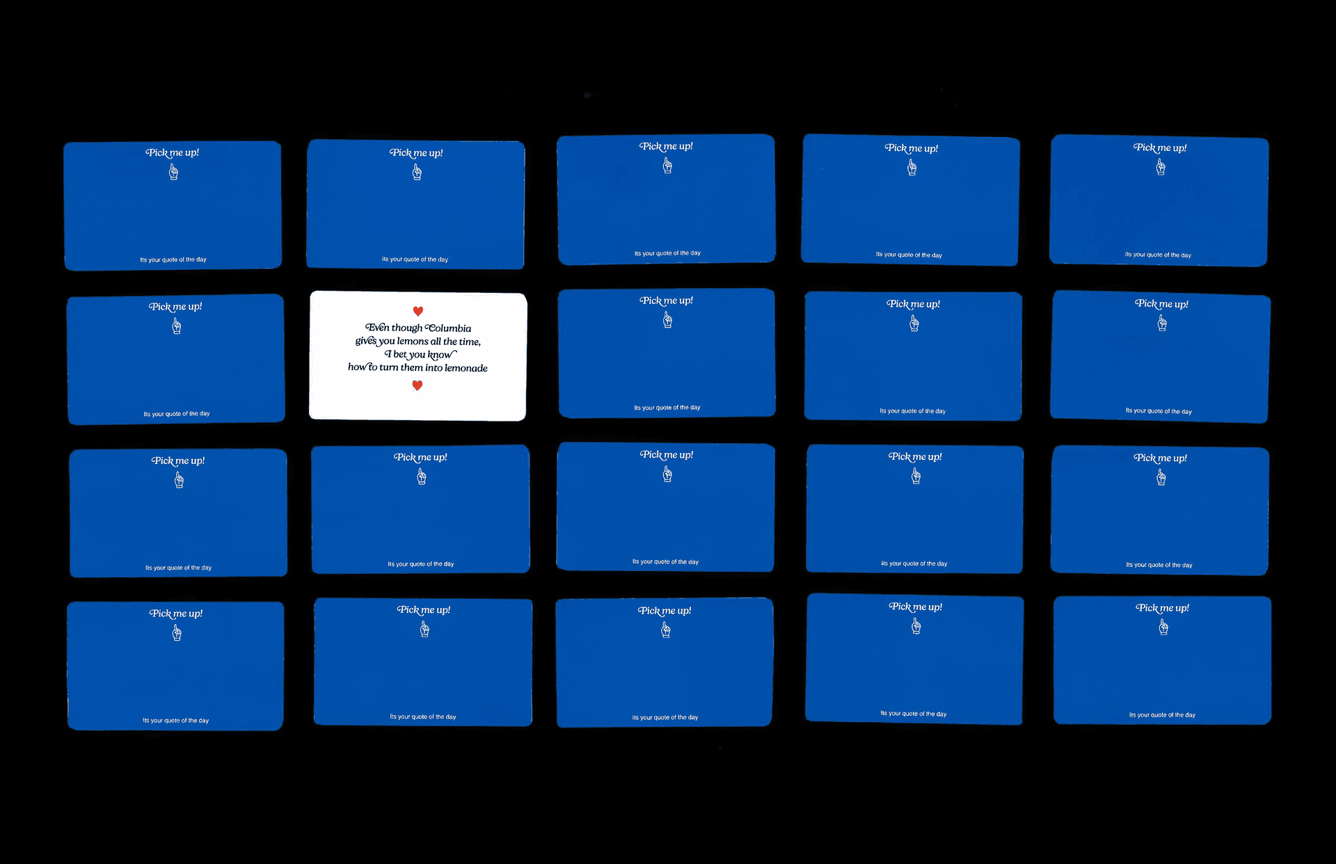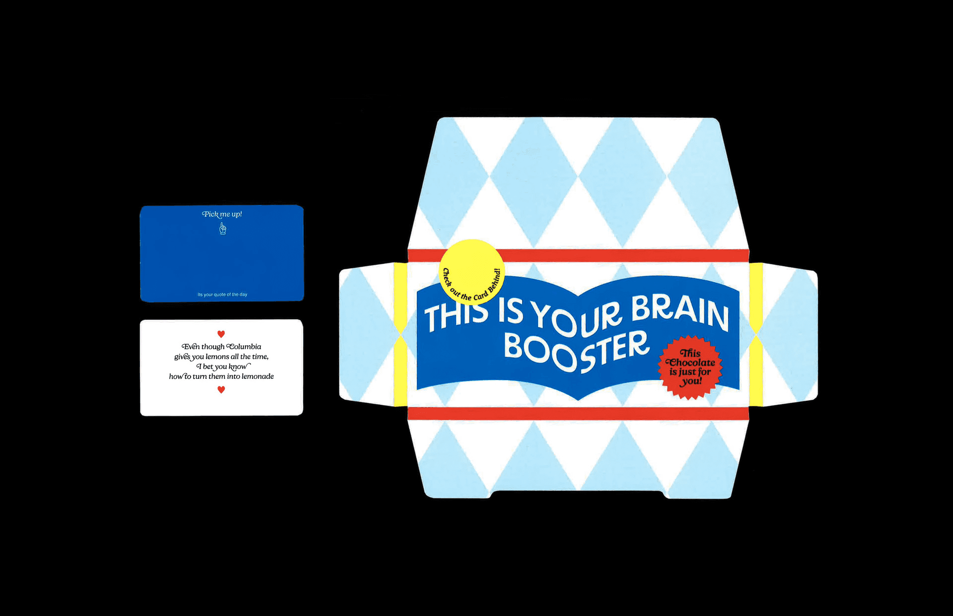 During exam season, stress becomes a shared experience within the library. This Is Your Brain Booster explores how small gestures, shaped through design, can offer moments of comfort and emotional relief. Chocolate packages were distributed to the Columbia University students, each paired with a randomly selected card featuring a witty message.